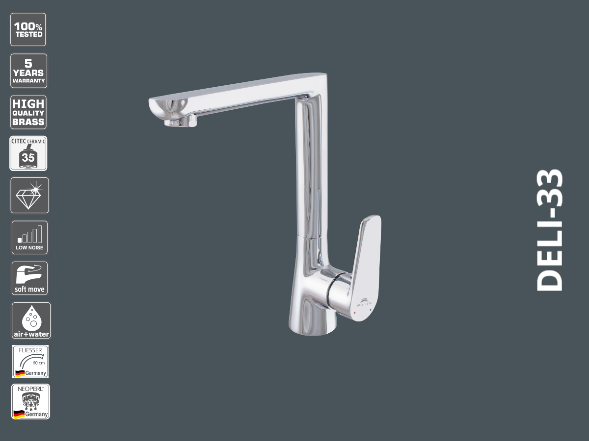 DELI faucets represent timeless design and quality – ideal solution for everyone with a reasonable price point. This series offers a wide choice of faucets – create a solid and sleek style in your home.