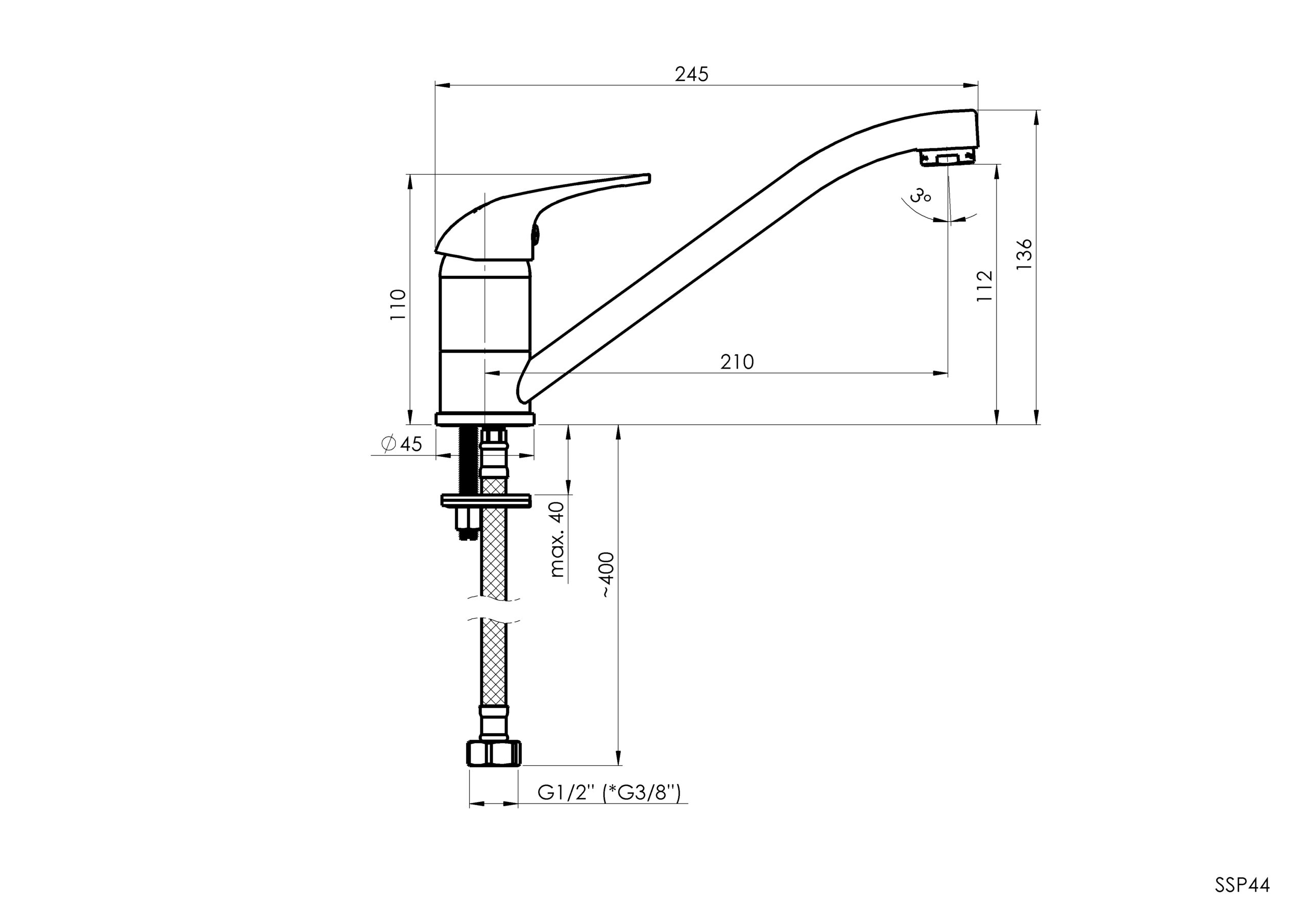 • Соединительные шланги высокого давления 40 см для установки вашего крана.